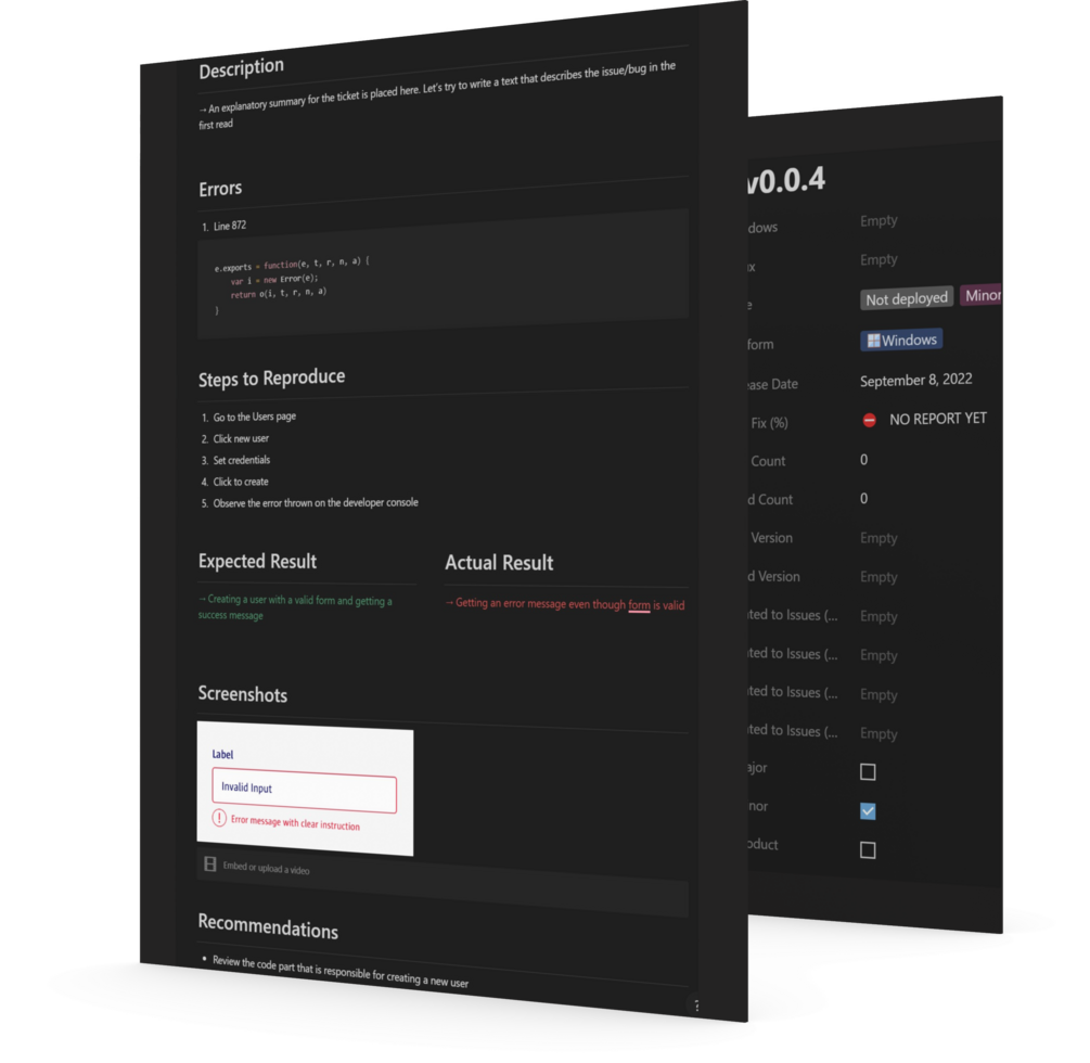 ✅ A release tracker that Notion had never met before. See your progress of related bug fixes with percentages and these automated progress statuses: