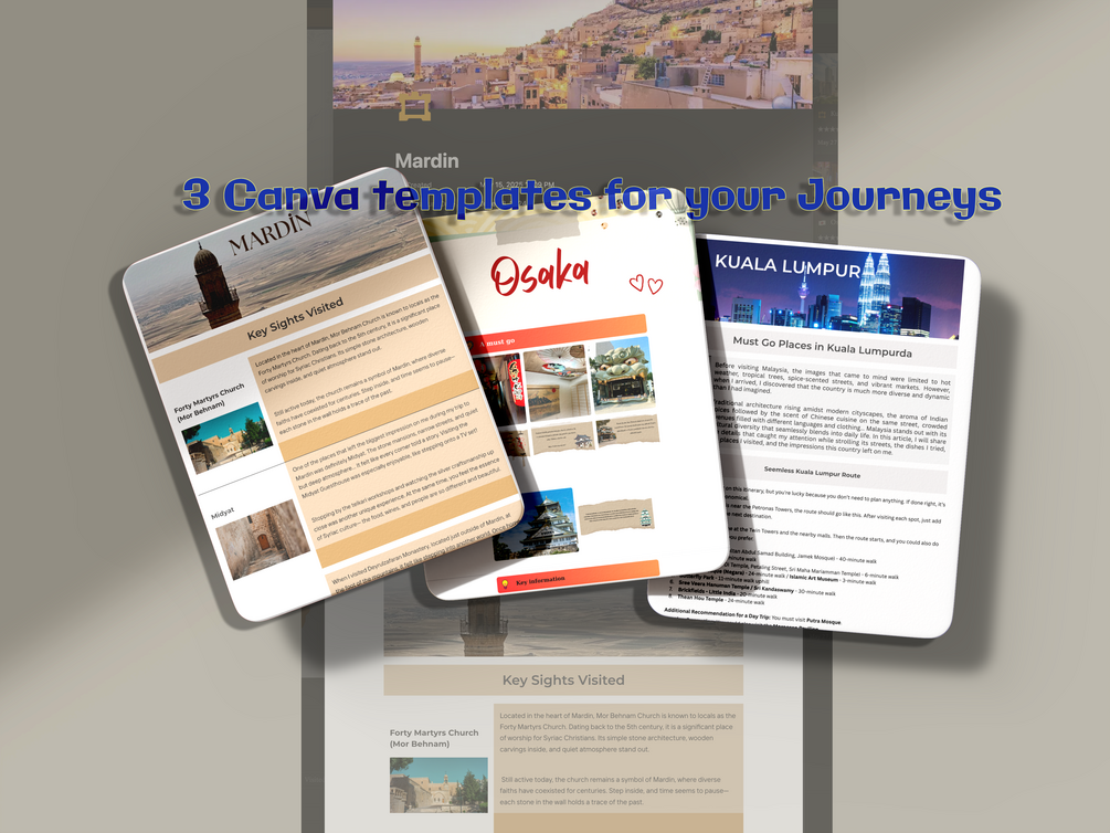 - A preparation list and multiple Canva templates for your Journeys. Never forget any memories.
